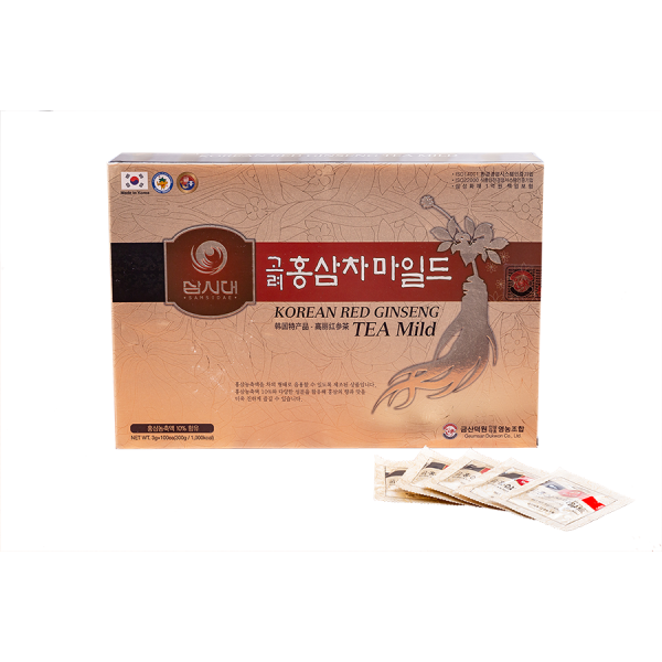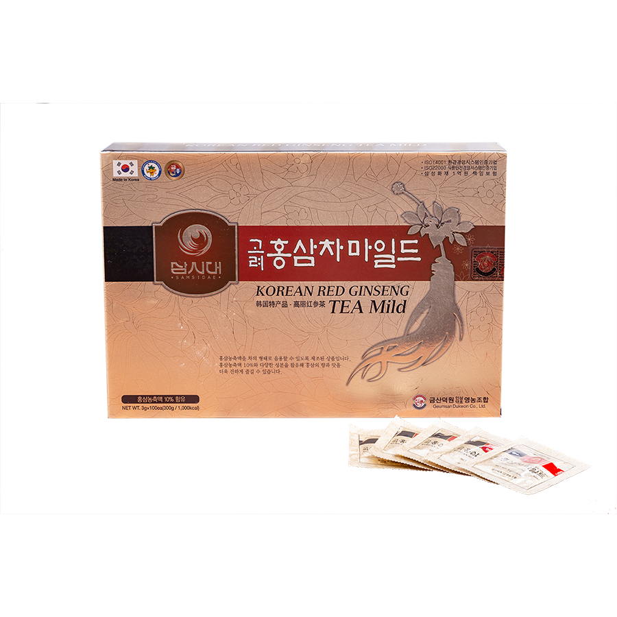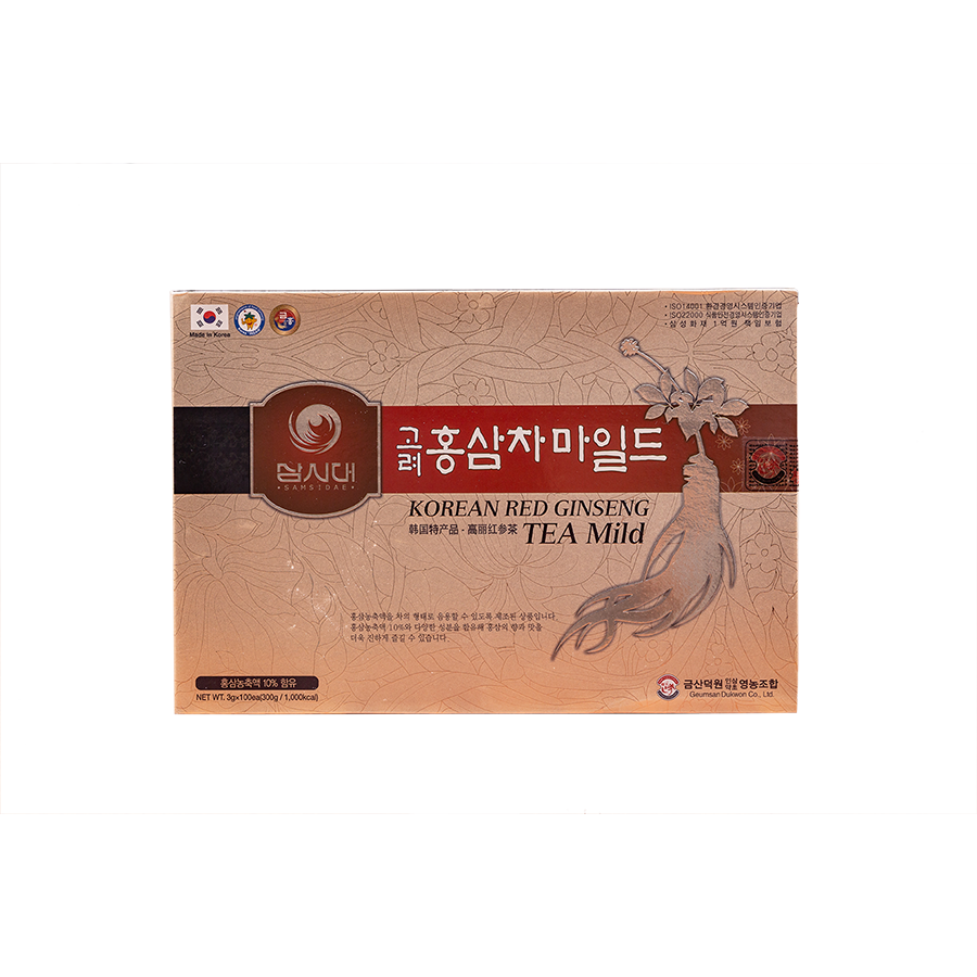 Korean Red Ginseng Tea Mild is the granule-type red ginseng product containing red ginseng concentrate made by extracting and concentrating effective components from Korean specialty Korean red ginseng as a main ingradient. This product hits modern men’s taste as it is the granule-type,and can be drunk conveniently as it is well dissolved in warm/cold water.